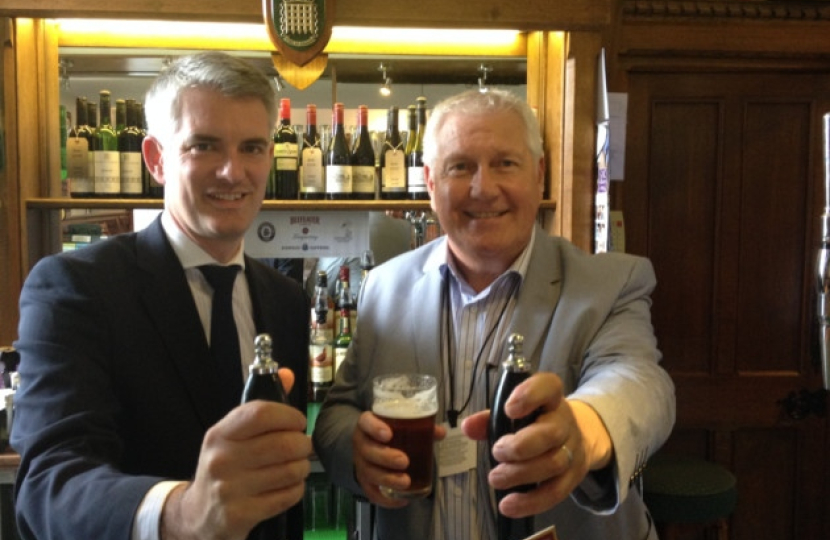 They were met by South Suffolk MP James Cartlidge, who arranged for the 4.2pc bitter to be on sale in the bar in Westminster.